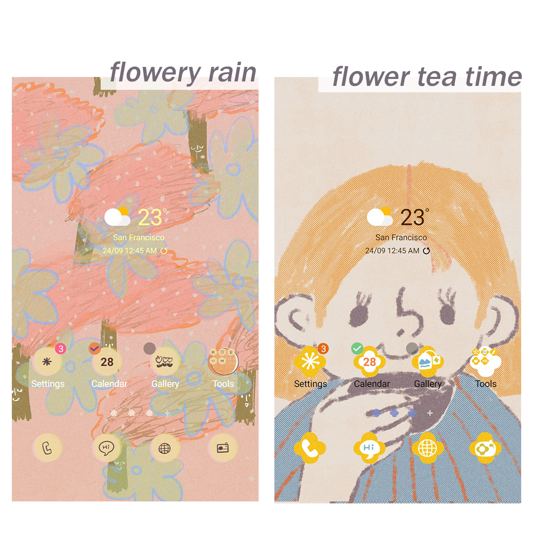 From April 5th to April 19th, 70% off 'Flowery rain' theme and 'Flower Tea Time' theme.