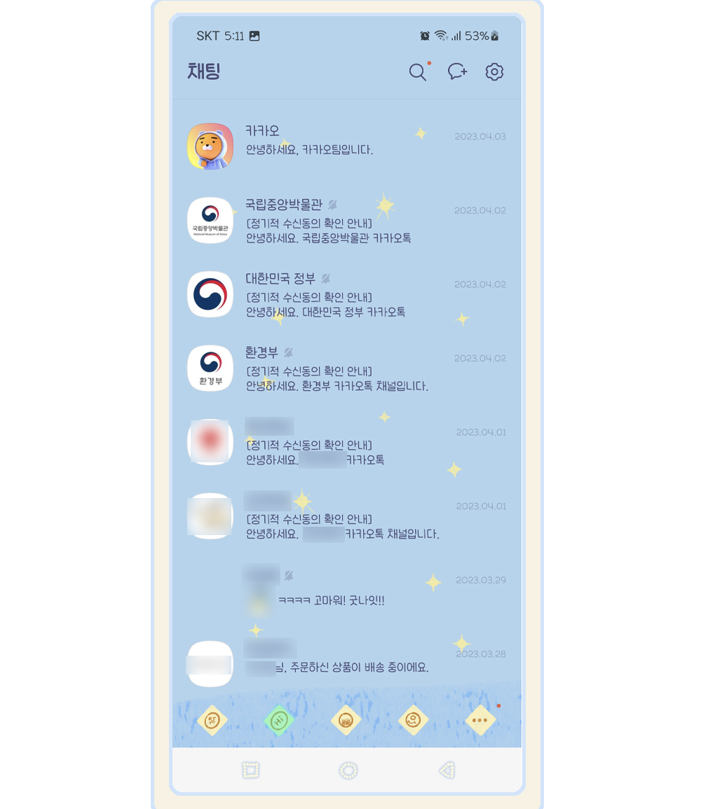 늘 믿어주시고, 보내주시는 애정 덕분에 카톡 테마도 제작할 수 있었습니다!