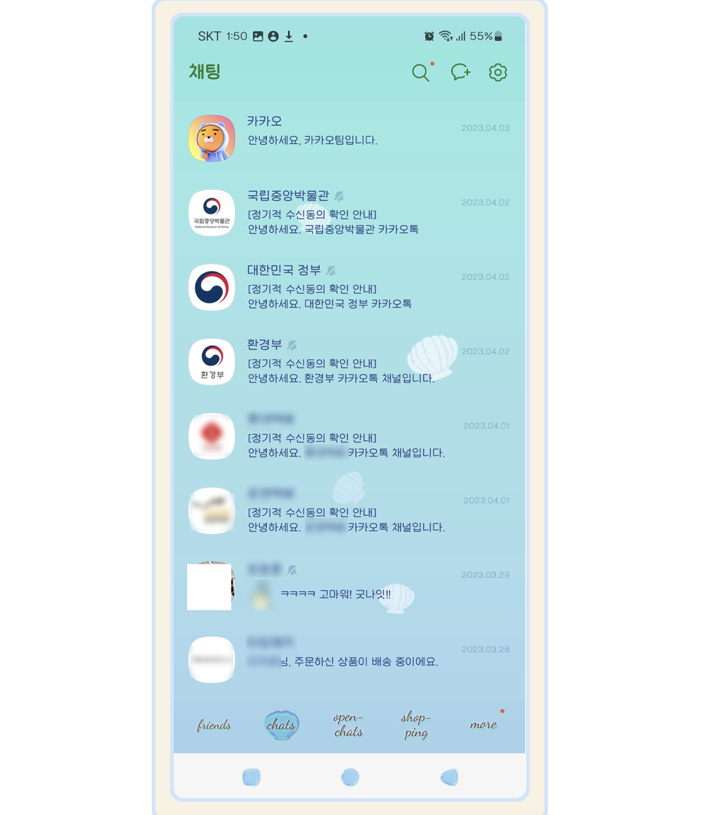 카카오톡의 업데이트로 인한 카톡테마의 업데이트는 제공하지 않습니다.