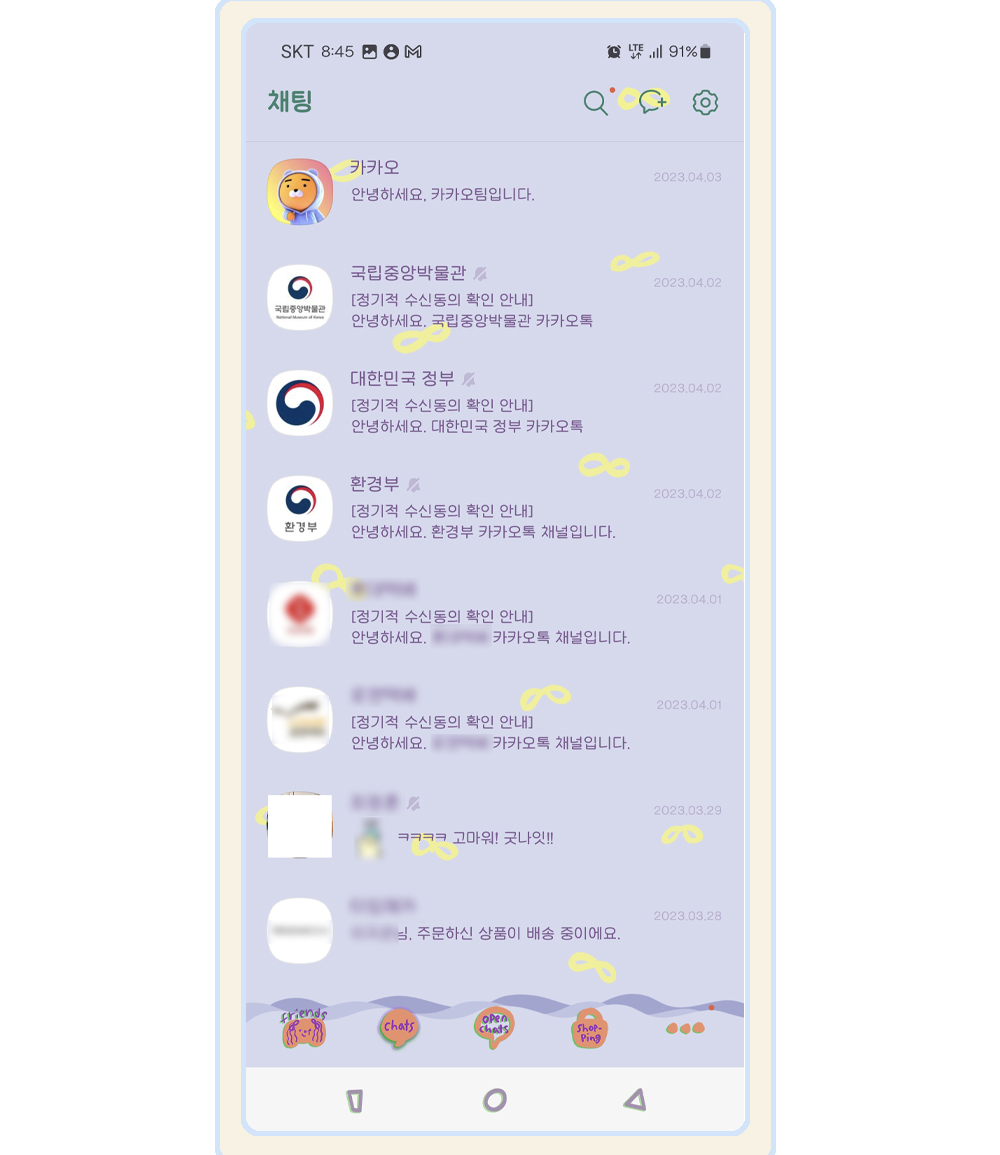 늘 믿어주시고, 보내주시는 애정 덕분에 카톡 테마도 제작할 수 있었습니다!