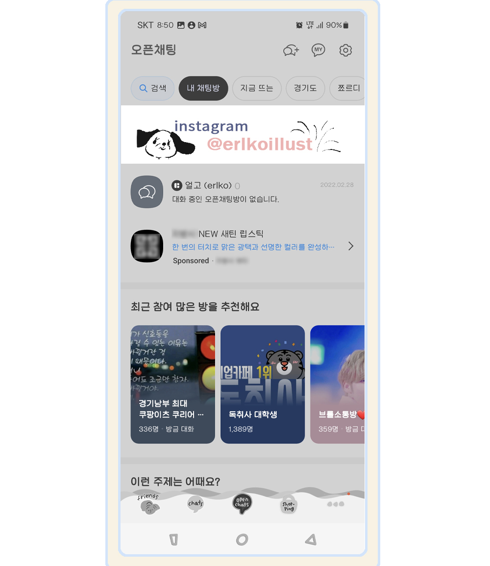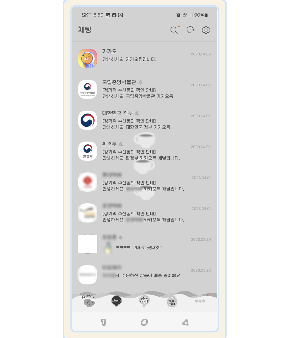 ※기종에 따라 카톡실행시 나타나는 첫 화면이 테마에 적용된 시작 (splash) 화면이 아닌,