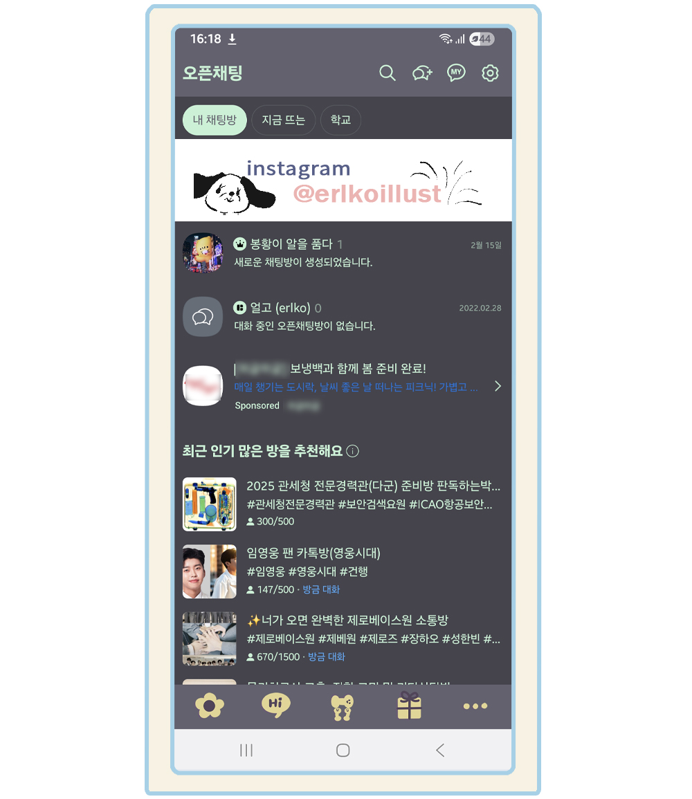 최신의 버전에서는 아이콘의 디자인이 제대로 반영되지 않습니다. ( 숏폼&오픈챗 아이콘)