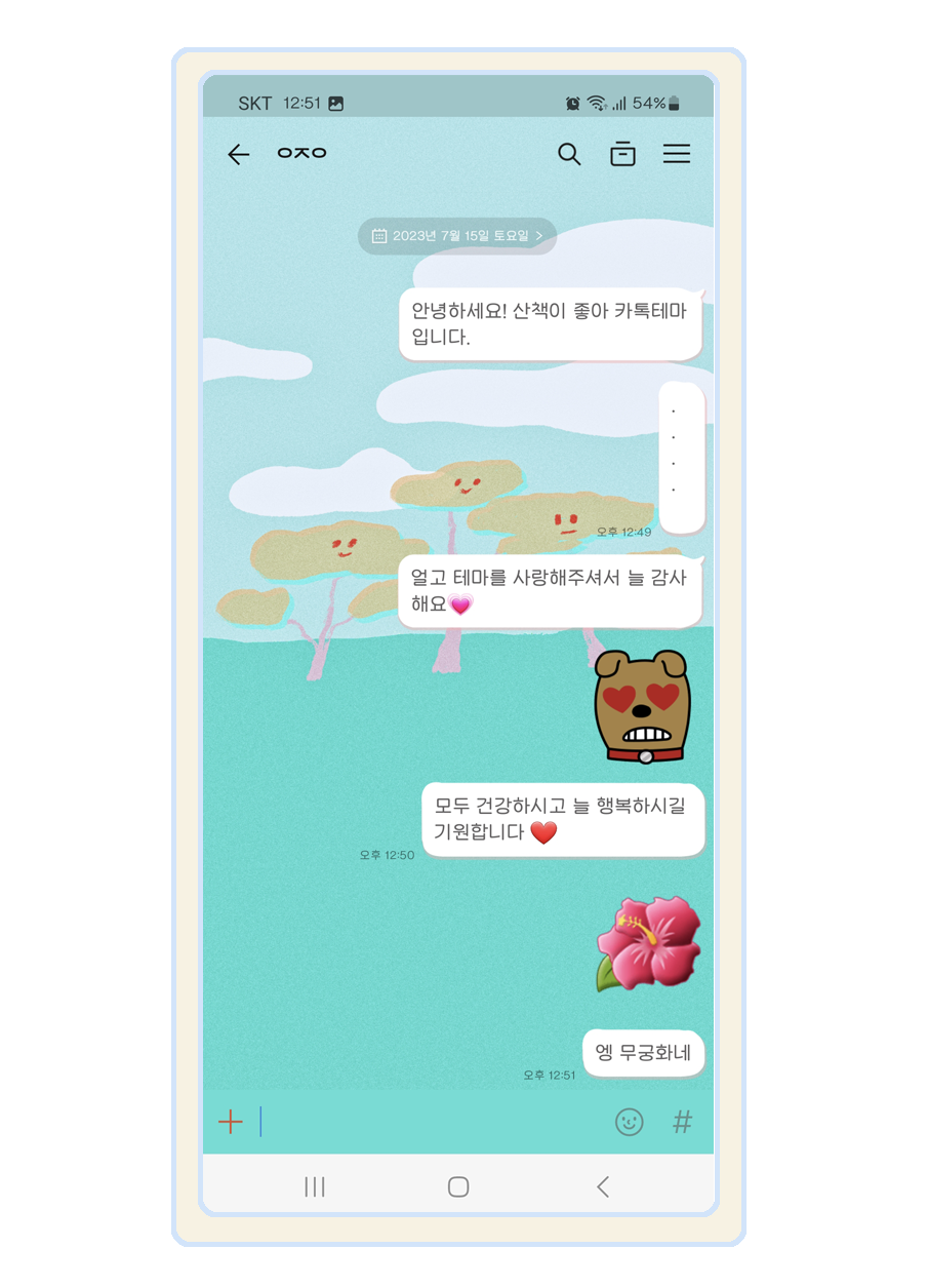 남겨주시고 보내주시는 애정 덕분에 카톡 테마도 제작할 수 있었습니다!