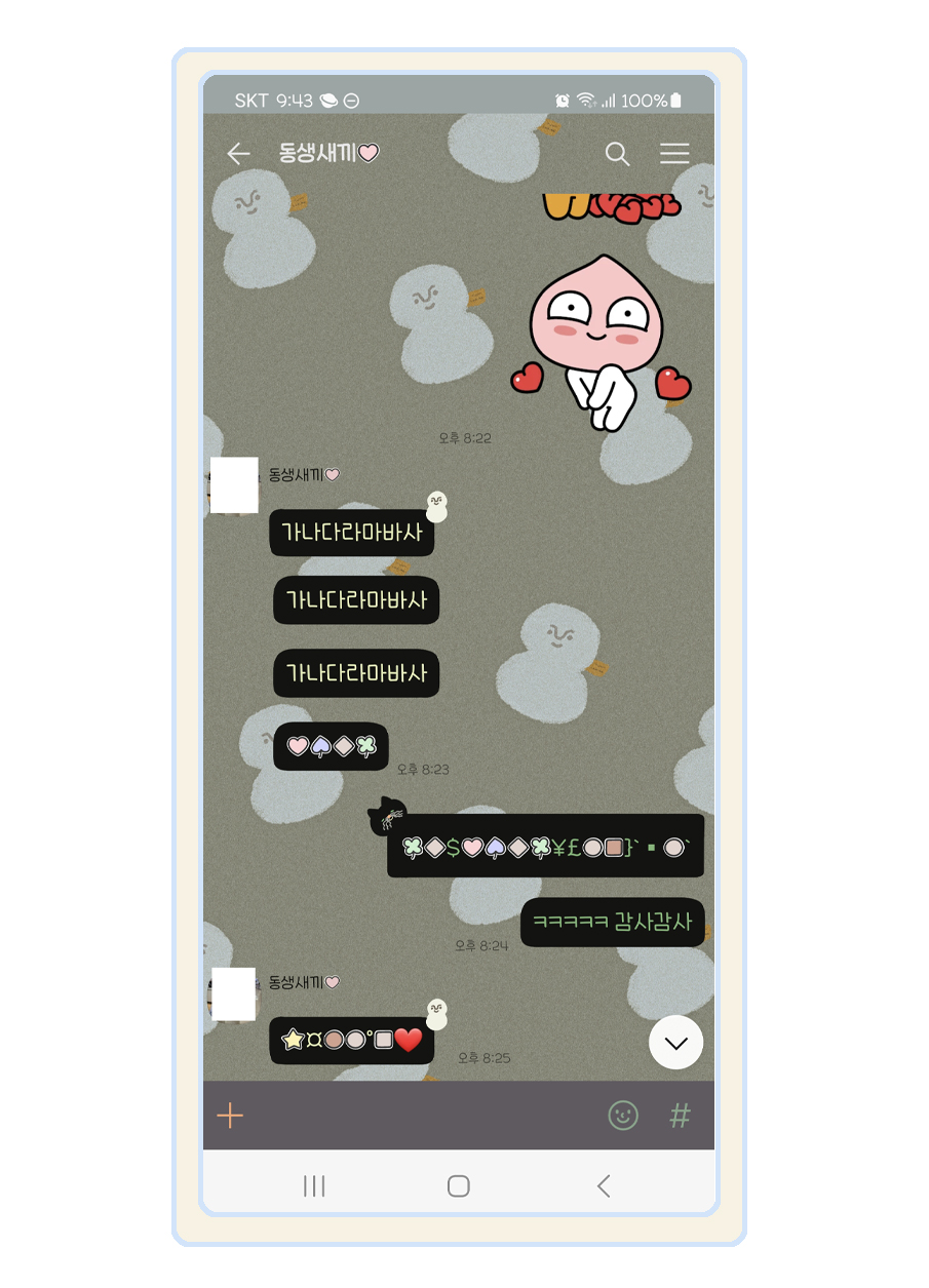 4. 카카오에서 제공하는 파일을 바탕으로 제작하였고, 3가지 종류의 프로그램으로 검사하였으나 발견하지 못한 악성 요소로 인해 개인정보가 유출될 가능성이 있습니다. 이를 충분히 인지하신 후에 카톡테마를 요청해주시기 바랍니다.♡ ERLKO 얼고는 사고에 대한 책임을 지지 않음을 알려드립니다!
