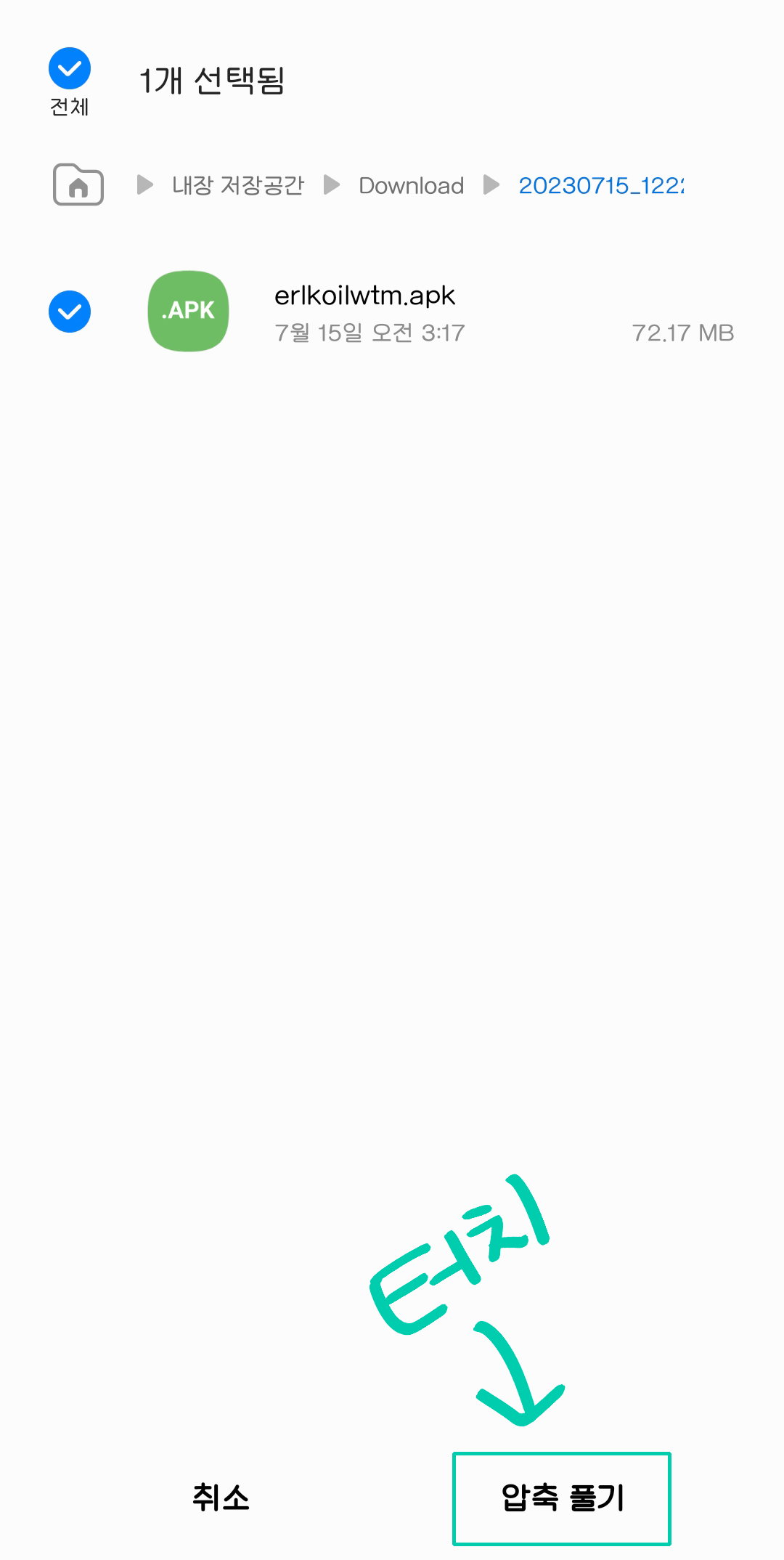 > 다운받은 압축파일터치 > 압축파일 풀기