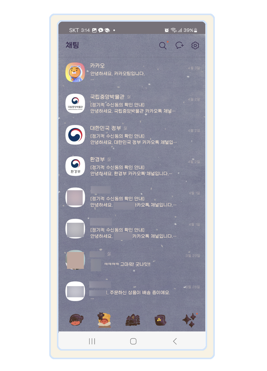 남겨주시고 보내주시는 애정 덕분에 카톡 테마도 제작할 수 있었습니다!